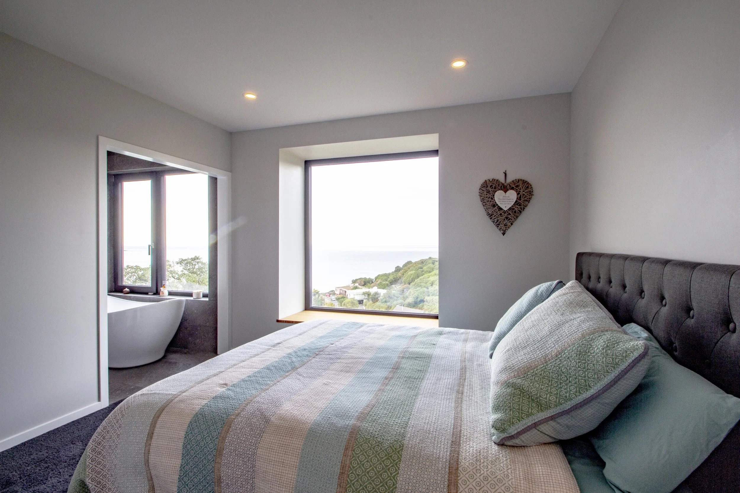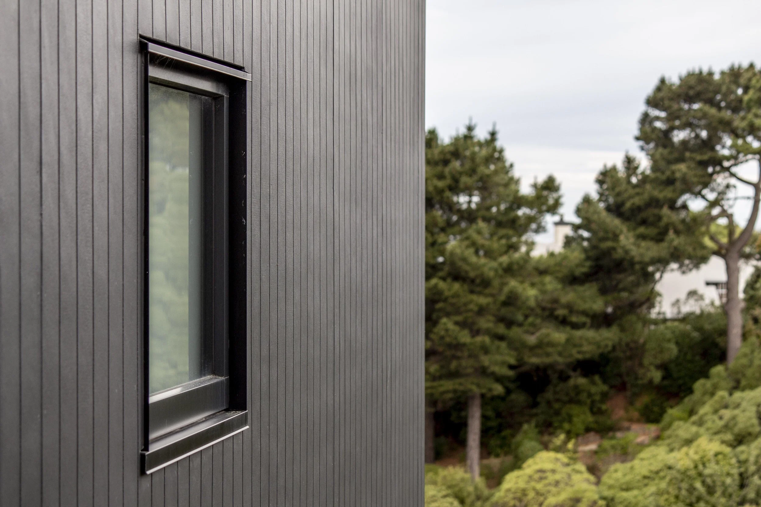 The site presented a unique set of challenges during the design phase. The need to capture breathtaking views of St Clair beach, harness solar gains from the north, provide vehicle access and navigate a steep site close to the road demanded creative solutions. The result is a modern black pavilion, cantilevered over the challenging terrain.