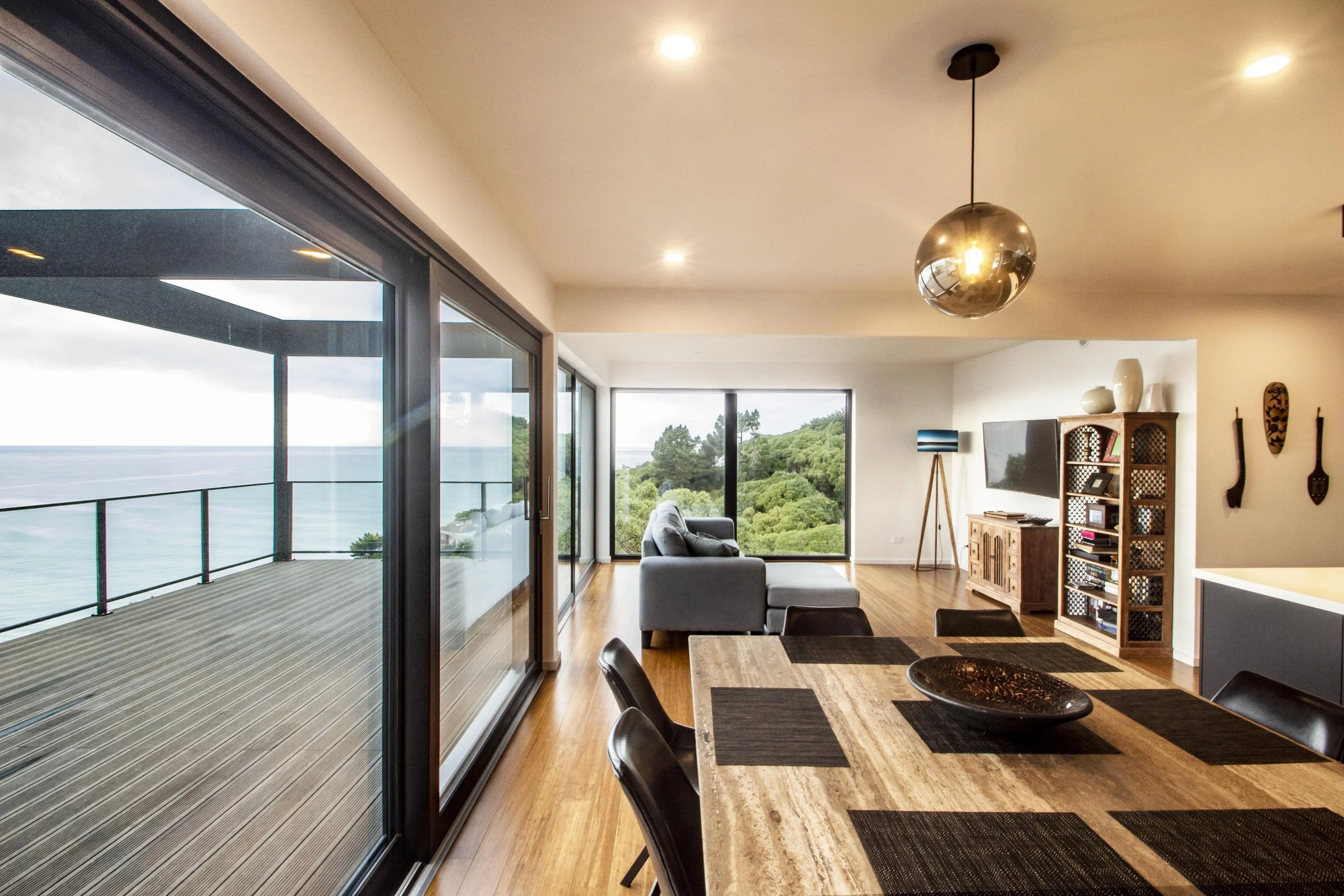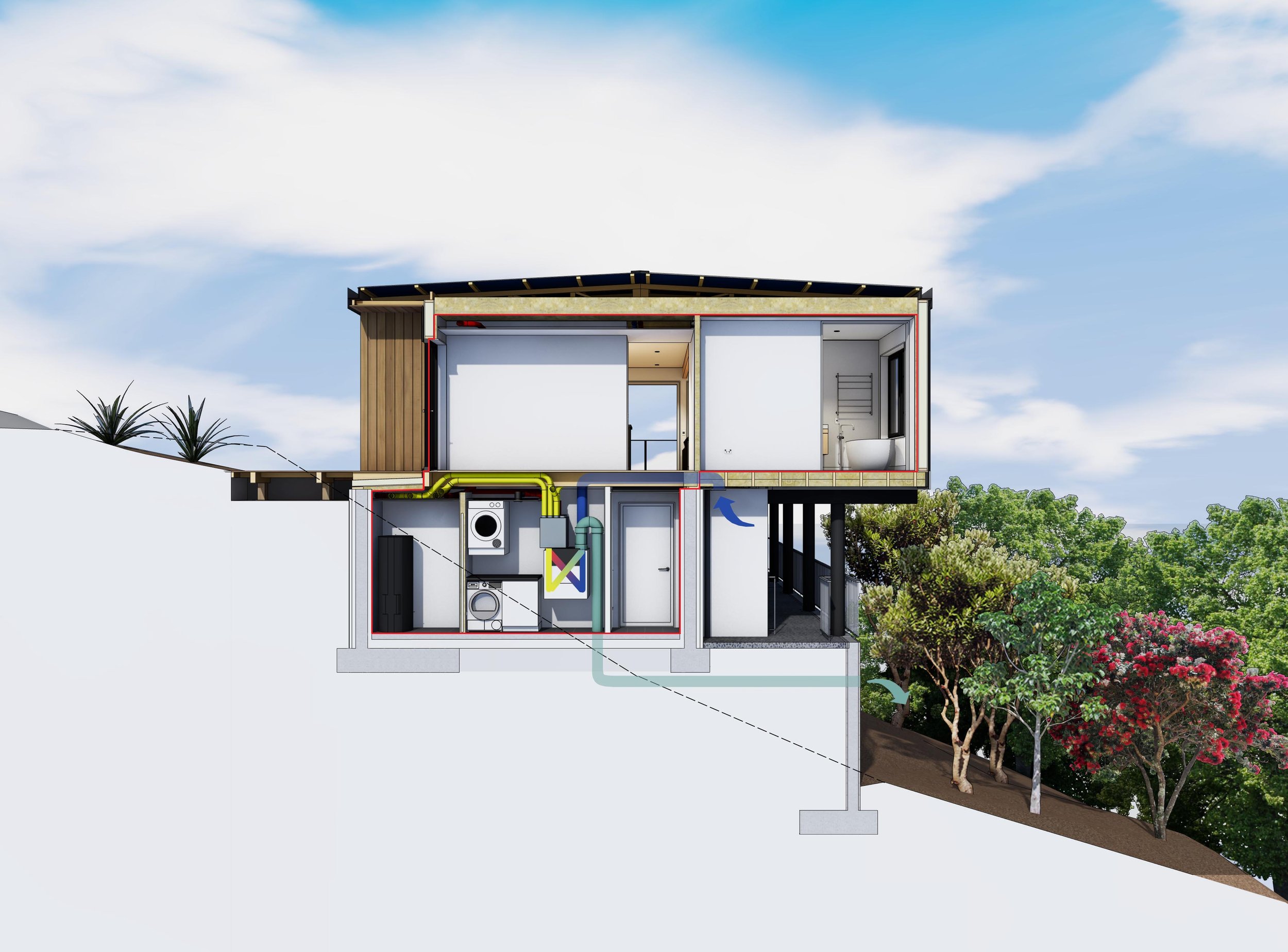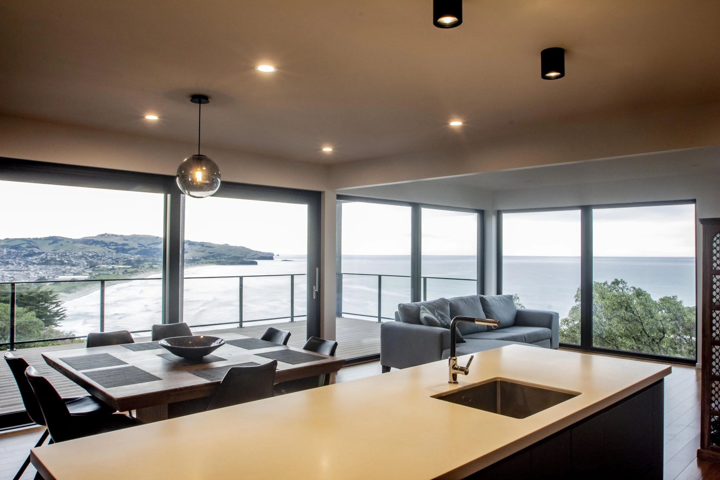 Cantilever House is a certified passive house located on a steep site overlooking St Clair beach in Dunedin. This project was born out of a family's quest for a comfortable, healthy, and energy-efficient home, inspired by their experiences in a well-insulated, centrally heated residence in the UK.