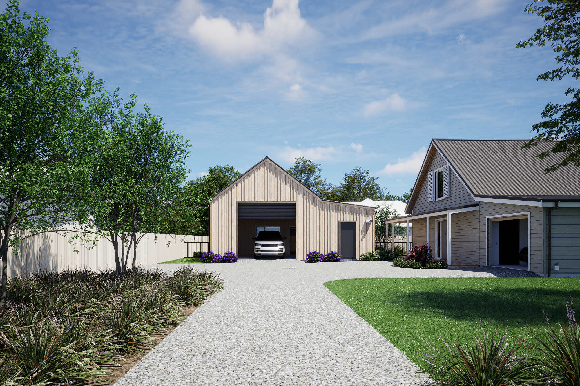 The clients love traditional bevel backed weatherboard homes and so the main house was developed using this language. The workshop was designed using a large plywood portal frame to enable the large open bay and clad in local macrocarpa timber cladding.